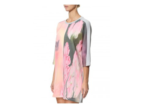 Frecher Sommer-Look im verführerisch schönen Style mit weitem Rundhalsausschnitt und großem Blumenprint mit Strasssteinen. Trendiger Saumabschluss zum Binden. G...