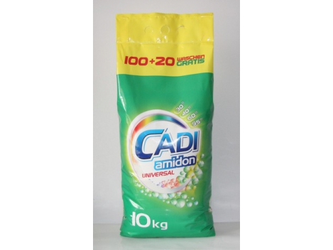 Universalūs skalbimo milteliai Cadi amidon universal, 10 Kg Skalbimo milteliai, skalbimimui skalbimo mašinose ir rankomis – spalvotiems ir baltiems audiniams. Vokietijos gamintojo milteliai; Skirti spalvotiems ir baltiems audiniams; Efektyviai pašalina dėmės ir nešvarumus; Sudėtyje yra vandenį minkštinančių dalelių ir apsaugo skalbimo mašinas nuo kalkių; Puikiai skalbia esant 30, 40 ir 60 laipsnių temperatūrai; Milteliai puikiai tinka visoms skalbimo mašinoms ir rankiniam drabužių skalbimui.