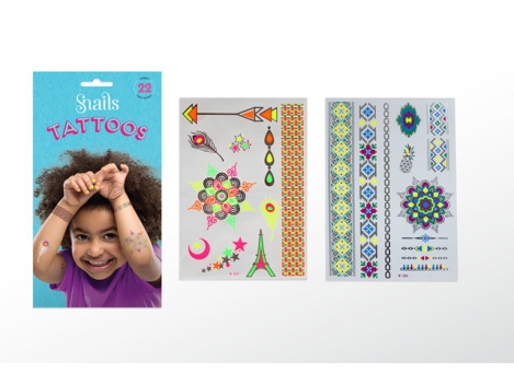 VAIKIŠKA tatuiruotė Neonas, 22 vnt., vaikams nuo 3 metų, Snails (7965) Snails - tatuiruotės. Dar viena "Safe N Beautiful" kompanijos naujiena!Visos mergaitės mėgsta puoštis. Snails tatuiruotės, tai naujas ir saugus būdas dekoruoti savo kūną. Tatuiruotės atrodo taip tikroviškai, kad ne vienas patikės, jog esate su tikrais papuošalais.Spalva: neoninėsKiekis: 22 vnt.Pakuotės dydis: 24*16 cm Snails tatuiruotės yra laikinos, lengvai naudojamos, vandeniui nepralaidžios ir neveikiančios odos. Išsilaiko 3-5 dienas.Naudojimas:1. Nuimkite permatomą plėvelę.2. Dėkite tatuiruotę paveiksliuku žemyn ant švarios ir sausos odos.3. Sudrėkinkite tatuiruotę drungnu skudurėliu ar kempinėle.4. Paspauskite tatuiruotę ir palaikykite 30 sekundžių.5. Nuimkite pakavimo popierėlį nuo odos.6. Norint pašalinti tatuiruotę, naudokite kūdikio odelei skirtą aliejuką.7. Pašalinus tatuiruotę, odelę patepkite losjonu.SVARBU! Atitinka visus ES keliamus saugumo reikalavimus.Įspėjimas! Netinka vaikams iki 3 metų. Nedėti ant jautrios ir pažeistos odos.