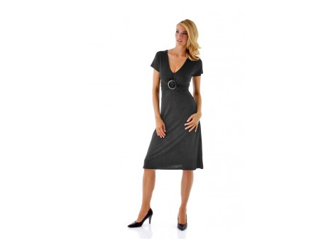 Der ultimative City-Dresscode - ganz designerlike interpretiert mit effektvollen Raffungen und modischen Nieten entlang des tiefen V-Ausschnitts und im Vorderte...