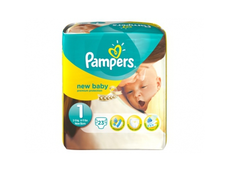 VOKIŠKOS Pampers New Baby sauskelnės, 1 dydis (2 - 5 kg), 23 vnt.