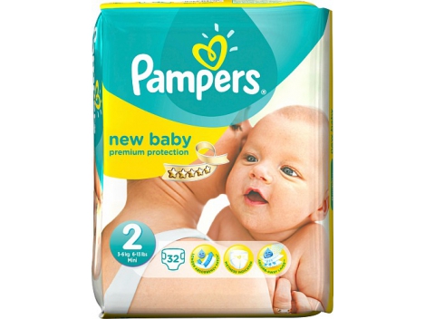 VOKIŠKOS Pampers New Baby sauskelnės, 2 dydis ( 3 - 6 kg), 32 vnt.