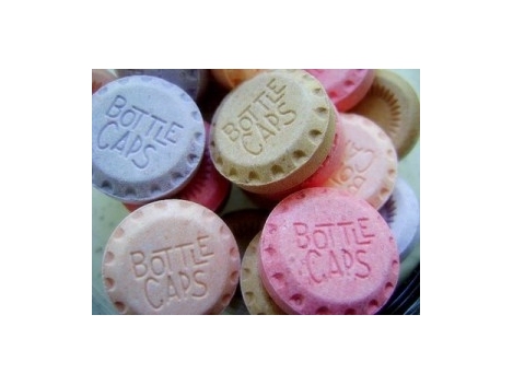 Wonka Bottle Caps 5vairių skonių kamšteliai-dražė 170g  Šis prekinis saldumynų ženklas kilęs USA. Nuo 1971 metų, priklauso Nestle kompanijai.1971 metai buvo pastatytas filmas Willy Wonka, kuris labai išpopuliarėjo Amerikoje. Ir iki dabar mėgiami visi Wonka saldumynai jaunimo bei vaikų tarpe. Spalvingi įpakavimai, patogus atidarymas, žaismingos dražė figurėlės.   Sudėtis: Dekstrozė,maltodekstrinas, ir mažiau kaip 2% kalcio stearatas, obuolių rūgštis, fosforo rūgštis, dirbtiniai skoniai, karamelės spalvos (mėlyna, raudona, geltona).Sudėtyje gali būti kviečių ir kiaušinių. Maistinė vertė: kcal 60, riebalų 0g, natrio 0mg, anglevandenių 14g (iš kurių cukrų 13g), baltymų 0g.