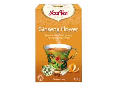 YOGI TEA Gingseng ekologiška ajurvedinė arbata, 30gŽenšenio žiedų arbata padės Jums susikaupti, nuramins ir palaikys vidinę stiprybę.Kruopščiai suderintas ženšenio žiedų, vaisių kvapo citrinžolės, apelsinų žievelių ir šviežių pipirmėčių mišinys virto nepaprasta arbata, kuria galima mėgautis bet kuriuo paros metu. Sudedamosios dalys: citrinžolė, pipirmėtės, rožių žiedlapiai, apelsinų žievelės, saldymedis, kardamonas, ženšenio šaknis, cinamonas, ženšenio žiedai, imbieras, citrusinių vaisių ekstraktas, dilgėlės, liucerna, juodieji pipirai, salierų sėklos, gvazdikėliai, džiovintos arbatos grybo gėrimas.