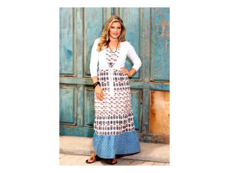 Atstovas linija. Madinga Maxi variantas forma su 3 skirtingais nuotraukas! Viliojanti V-kaklo įvyniojimas išvaizdą. Visiškai peržiūrėta krūtinę underbust siūlės. Blizgučiai, karoliukai ir kniedės siuvinėti underbust jungą. Išsiuvinėti blizgučiai ir smeigės akcentai papuošti sijonas. Reguliuojamos petnešėlės. Smocked atgal užtikrina puikiai tinka. Šiek tiek surinko sijonas su raukiniai. Šoninis užtrauktukas. Pilnai pamušalu. Ilgis apie 136 cm. Viršutinė ir pamušalas 100% medvilnė. Neparodant baltas bolero švarkelis.