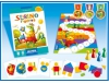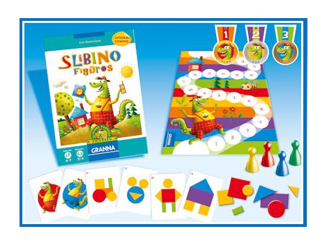 Žaidimas Slibino figūros, 4-7 m. vaikams GRANNA Žaidimo aprašymas:Žaidimo tikslas yra kuo greičiau iš spalvotų figūrų – apskritimų, kvadratų, stačiakampių ir trikampių – sudėti kortelėje nupieštą paveikslėlį. Daugiausia taškų pelnys tas, kuris užduotį atliks greičiausiai. Žaidėjas, pirmasis sudėjęs paveikslėlį, čiumpa aukso medalį (su numeriu 1), antrasis – sidabro (su numeriu 2), trečiasis – bronzos (su numeriu 3). Kai ketvirtasis žaidėjas baigia dėlioti savo paveikslėlį, skiriami taškai.Pirmasis užduotį atlikęs žaidėjas savo loštuką taškų skaičiavimo lentelėje perkelia per 4 laukelius į priekį, antrasis – per 3 laukelius, trečiasis – per 2 laukelius, ketvirtasis – per 1 laukelį. Laimi tas žaidėjas, kuris pirmasis taškų skaičiavimo lentelėje pasiekia 20 numeriu pažymėtą laukelį. Užduotys pagal sudėtingumą suskirstytos į kelis lygius, todėl žaidimą pamėgs ir maži, ir dideli. Dėmesio! Medaliuose yra skylutės, per kurias galima perverti virvutes arba juosteles, ir medalius naudoti su šiuo žaidimu nesusijusioje veikloje. Rinkinį sudaro:- taškų skaičiavimo lentelė- 4 loštukai- 45 kortelės- 64 figūros- 3 medaliai- žaidimo taisyklės Rekomenduojamas žaidėjų amžius: 4 - 7Žaidėjų skaičius: 2-4Žaidimo trukmė: 15 min.