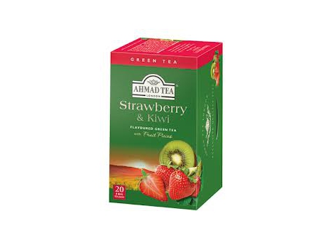 Žalioji arbata STRAWBERRY & KIWI, 20*2g Pasimėgaukit angliškos kokybės skoniu! "Ahmad" arbata, tai vienos britų šeimos verslas, įkurtas remiantis keturių kartų arbatų maišymo ir degustavimo patirtimi. Sukaupią tokią patirtį, pirmąją savo arbatą į rinką išleido 1986 metais. "Ahmad" arbata tapo tokia populiari, kad dabar yra eksportuojama net į 70 pasaulio šalių, šešiuose žemynuose. "STRAWBERRY & KIWI ", nepamirštamo skonio žalioji arbata su braškėm ir kiviais. Puikiai atgaivins vasarą ir sušildys žiemą. Sudėtis: Žalia arbata, aromatizatorius, 1% (braškės, kivi).
