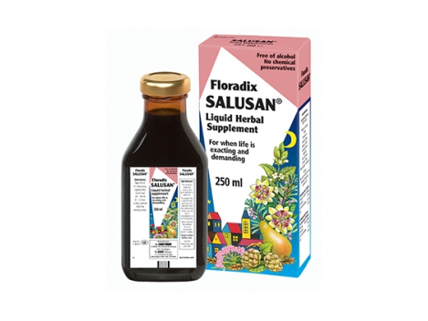 ŽOLINIS preparatas Floradix Salusan, 250 ml Maisto papildasŠį maisto papildą - žolinį preparatą patartina vartoti padidėjusios fizinės ar psichinės įtampos metu, pvz., esant stresinėms situacijoms mokykloje ar darbe, tinka kelionių ar egzaminų metu. Dozavimas:20 ml (matavimo dangtelis) vidurdienį, ir 20-40 ml einant miegoti.Vaikams nuo 3 metų po 5 ml 2 kartus per dienąSalusan® sudėtyje nėra alkoholio ir cheminių konservantų – visos sudedamosios dalys yra natūralios. Sudedamosios dalys:72 % vandeninis ekstraktas, kurį sudaro šie augalai: rausvosios pasifloros (Passiflora incarnata), vaistinės melisos (Melissa officinalis), kvapieji rozmarinai (Rosmarinus officinalis), tikrosios citrinžolės (Cymbopogon citratus), paprastųjų kviečių gemalai (Triticum aestivum), paprastųjų miežių gemalai (Hordeum vulgare), vaistinių valerijonų šaknys (Valeriana officinalis), paprastųjų apynių spurgai (Humulus lupulus), tikrųjų citrinmedžių vaisių žievelės (Citrus limon), paprastųjų apynių spurgų liaukutės (Humulus lupulus), medus, kriaušių sulčių koncentratas, natūralios kvapiosios medžiagos, citrinų aliejus.